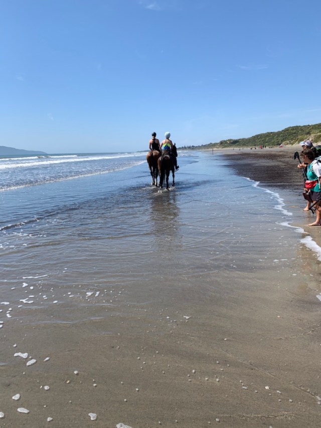 Zuerst ein paar Meter die Straße runter, zurück zum Trail. Dann dem Fluß 4km folgen bis zum Meer. Joggingstrecke für die Einheimischen. Es ist Samstag, alle sind unterwegs.