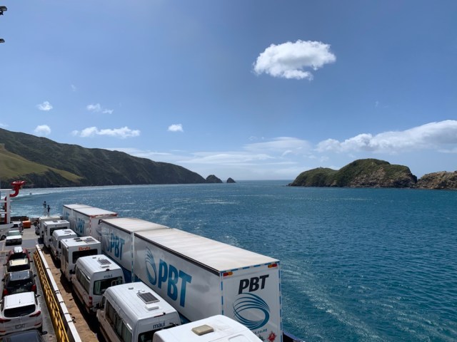 Früh morgens wurden wir am Backpacker vom Shuttle abgeholt. Ein Check-in wie am Flughafen, wir wurden unserer Rucksäcke beraubt. Mit dem Boardingpass durften wir dann auf die Fähre.