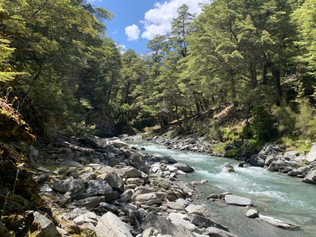 Anstieg vom Lake Ohau aus. Der Wald wartet wie Fangorn. Wir waren aber duch. Sind somit keine Orks. (Herr der Ringe Fans wissen vielleicht wovon ich Rede)