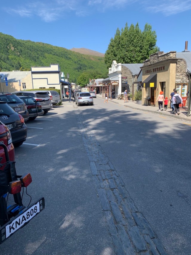 Mit schmerzenden Knie und Fußgelenk nach Arrowtown rein gehumpelt. Minisupermarkt: Zwei kühle Getränke. Im Schatten genießen.