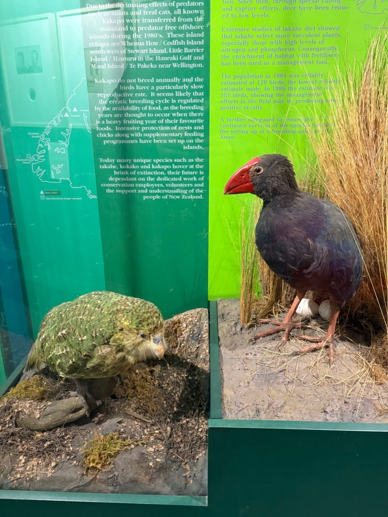 Im Docoffice hat man die fast ausgestorbenen Vögel und ihre Gegenspieler ausgestopft vorgeführt. Und ja, da ist eine Katze mit dabei.