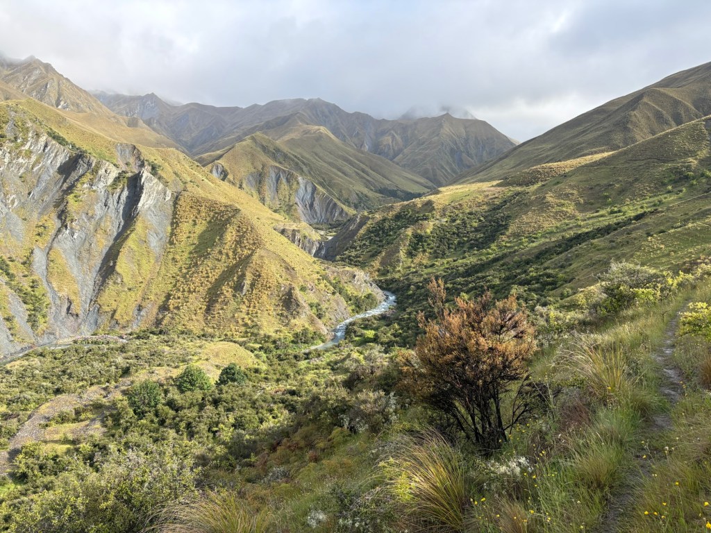 Bin die Niedrigwasserroute runter. Oftmals durch die Stachelbüsche schlagen, den Fluss 30 Mal kreuzen. Bei jeder Kreuzung eiskalte Füsse. Nach einem stolperer bis zur Brust ins Wasser eingetaucht.