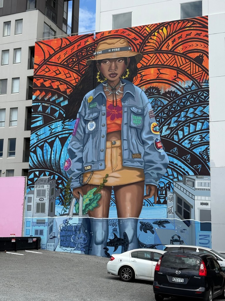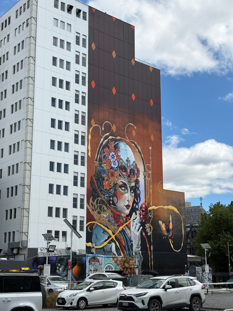 Mir wurde viel über Geschichte erzählt, aber auch interessante Hintergründe. Da auch in Neuseeland die Innenstädte immer mehr aussterben und die Einkaufszentren draußen übernehmen, hat man den Innenstadtbereich drastisch verkleinert. Und die Wohnungen auf dem Grünstreifen haben ca 20000 neue Anwohner an die Innenstadt gebracht. Damit kann das Zentrum überleben.