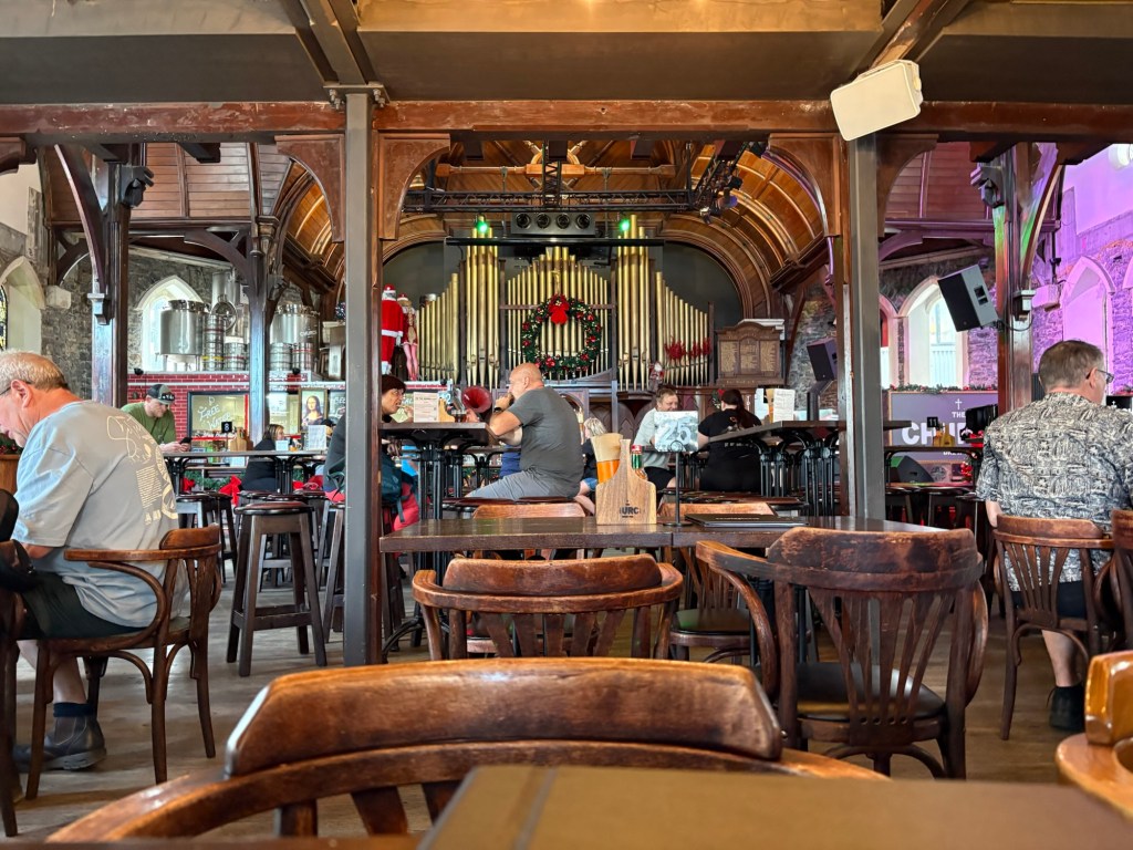 Einst Kirche, jetzt Pub mit guter Pizza.
