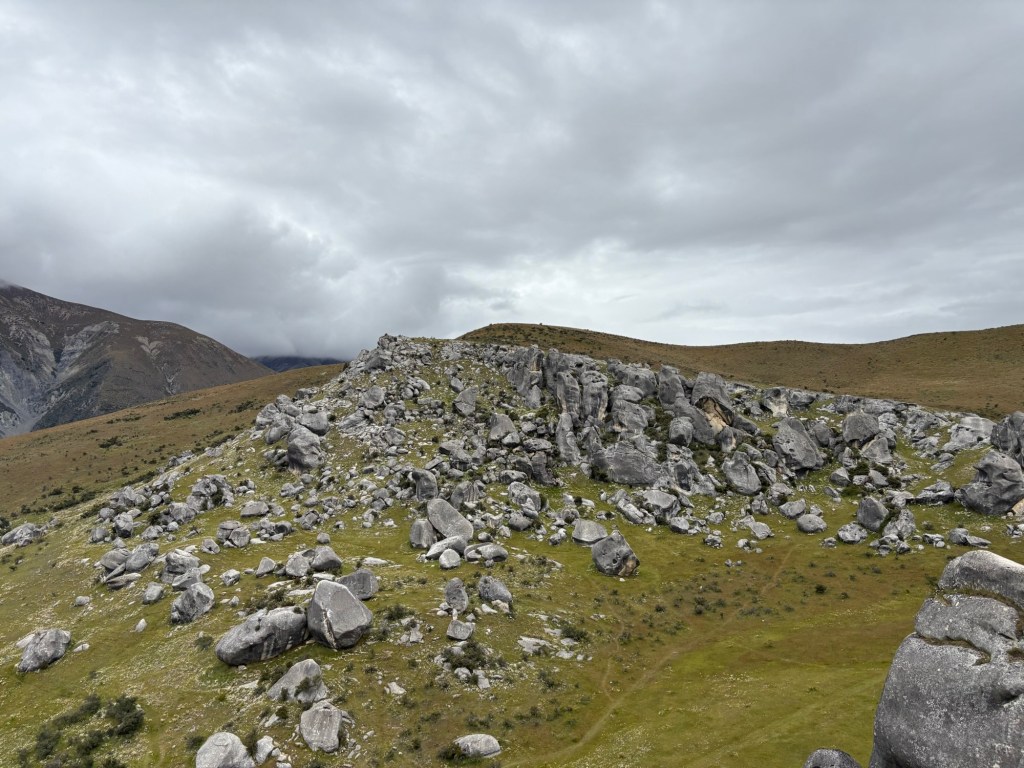 Dann in die Hügel, Arthers Pass ist das Ziel. Ich bin jetzt wieder komplett auf der Touriroute. Auf den Parkplatz bei den Steinhügeln, wo sowohl im Herr der Ringe als auch im Hobbit Jagdszenen gedreht wurden, kam man fast nicht drauf.