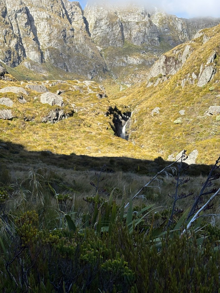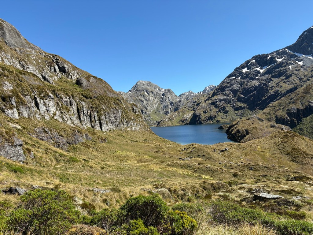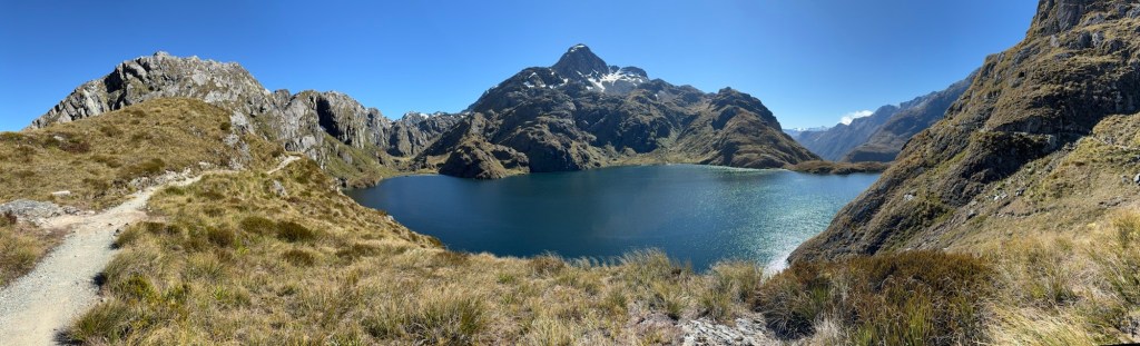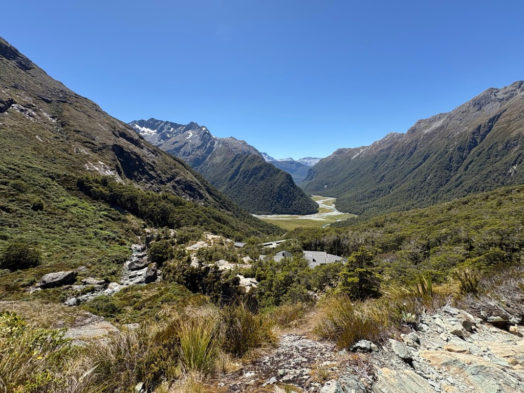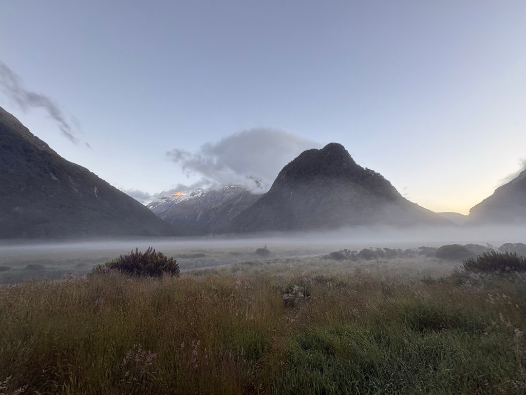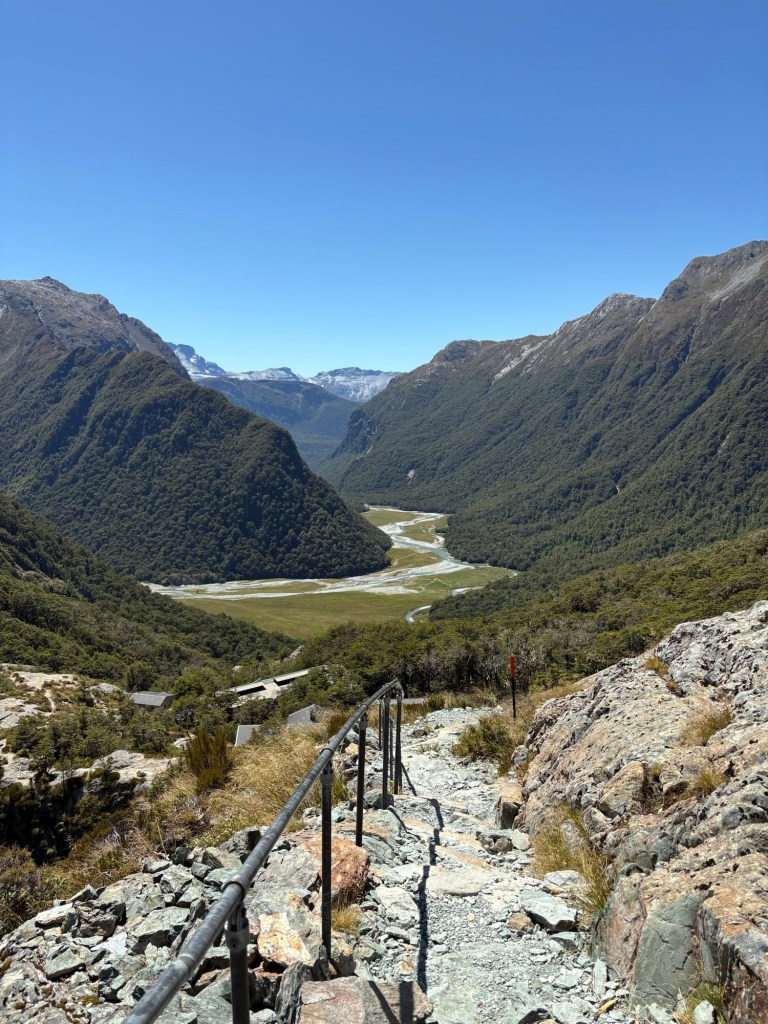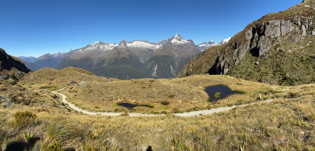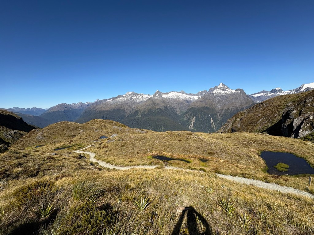 Man kann auch die Straße zum Milford Sound sehen. Besteigt man den Conical Hill, weitere 300 Höhenmeter, kann man angeblich bis zum Meer schauen.
