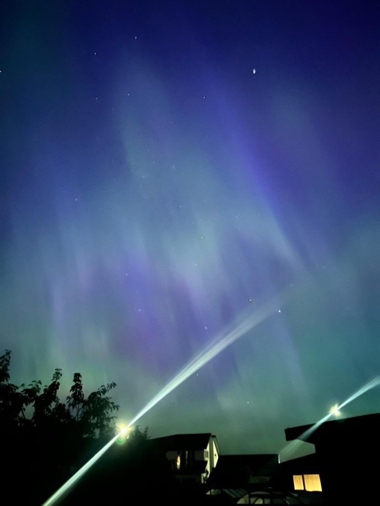 Gestern Abend musste noch jemand um elf Uhr am Campingplatz ankommen. Es war so schon lauter als üblich. Ich habe erst nachträglich kapiert, was es zu sehen gab. Als ich um halb zwölf raus bin, haben noch viele in den Himmel gekuckt. Ich habe nur einen gelben Schimmer wargenommen. Viel mehr gab es bei uns nicht zu sehen.