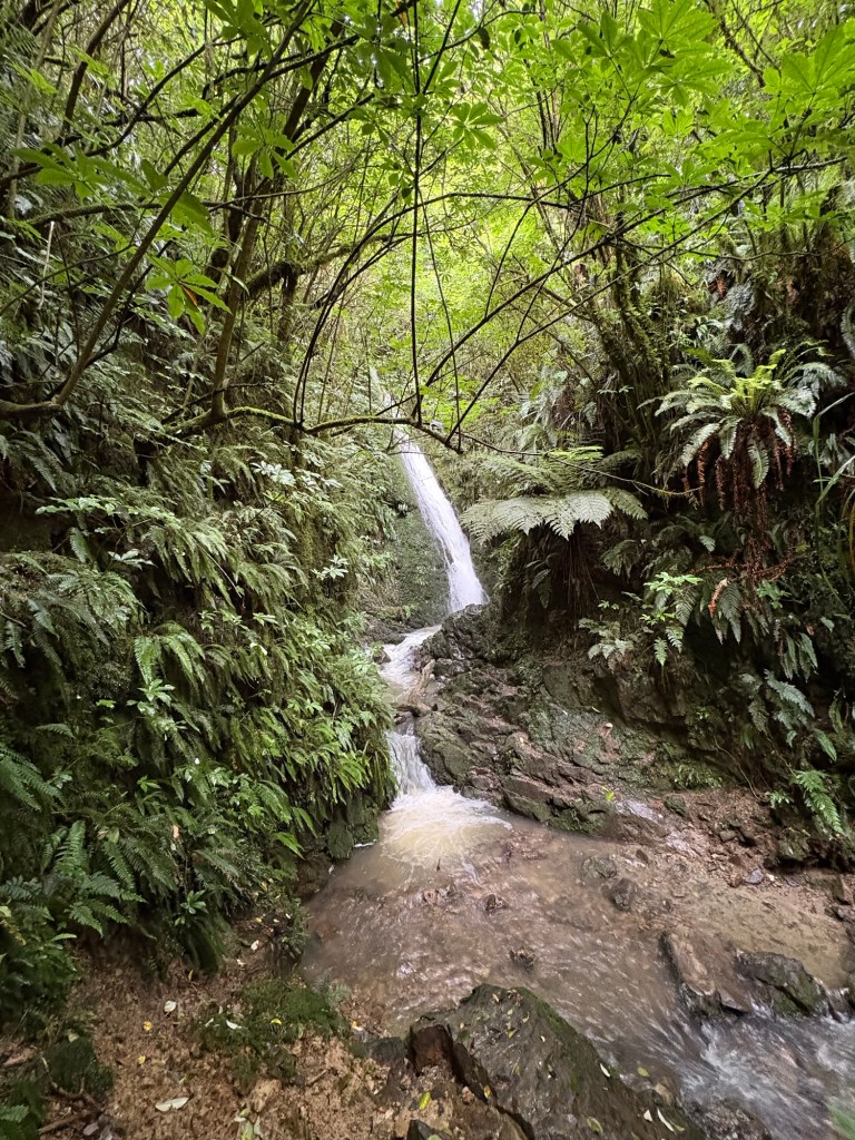 Der zweite Spaziergang, knapp eine Stunde sollte er gehen, ging zu einem Wasserfall. Hier waren einige Höhenmeter zu überwinden. Der Weg war nach den Regenfällen auch rutschig. Beim bergab gehen, taten auch sofort die Knie wieder weh. Den Wasserfall habe ich trotzdem erreicht.