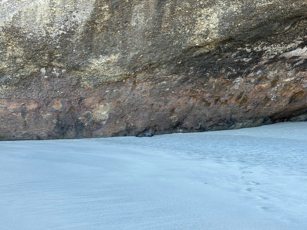 Mist. Bewohnt. Hab ihn zuerst nicht gesehen. So im Schatten. Er fühlte sich wohl auch unwohl. In meine Höhle oder ins Meer flüchten. Ich habe sofort umgedreht und ihn alleine gelassen.
