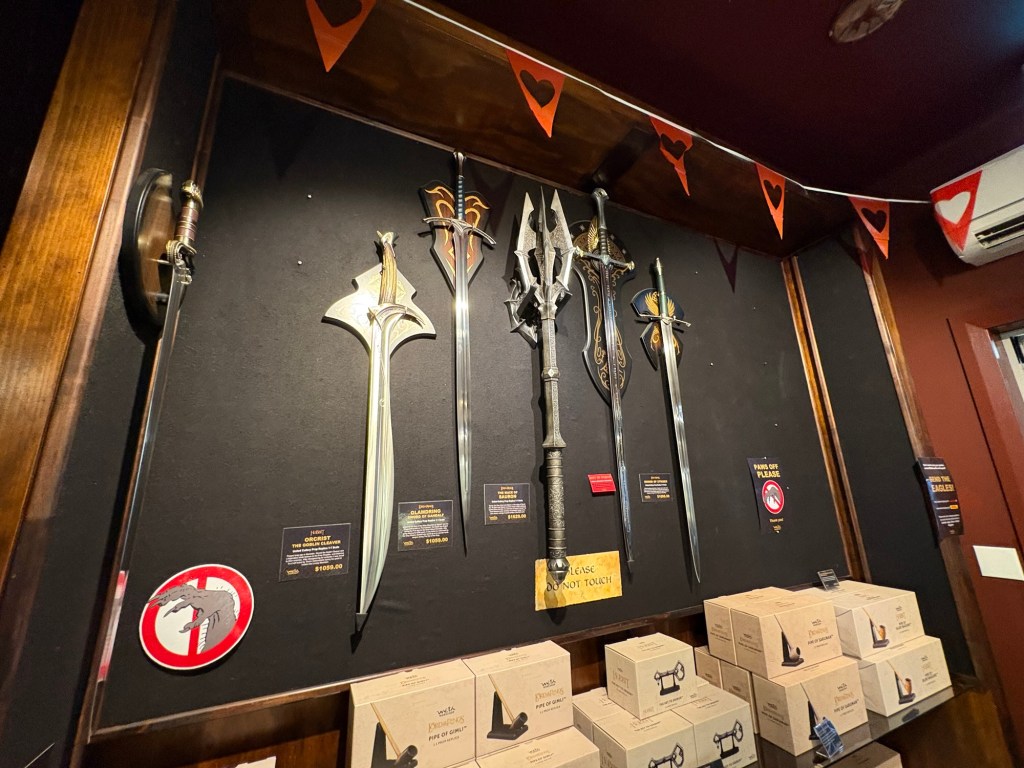 Im Verkaufsraum, der Weta Cave, ein Haufen Sachen zu kaufen.