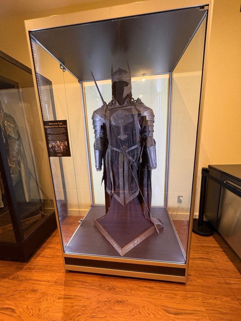 Die Tour bringt einen durch mehrere Showrooms. In den ersten drei darf man keine Fotos machen. Begründung war, es sind alles Originale und gehören zum Teil den Filmfirmen. Da waren tolle Exponate dabei. Nicht nur Herr der Ringe. Die Filmliste, die mit Braindead begann ist knapp 100 Filme lang. Klar, Durchbruch und Erfolg kam aus der Zusammenarbeit mit Peter Jackson und LotR.