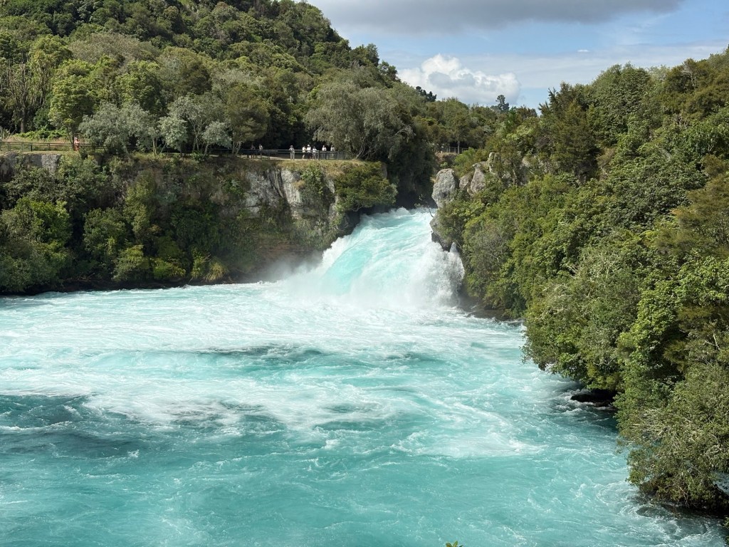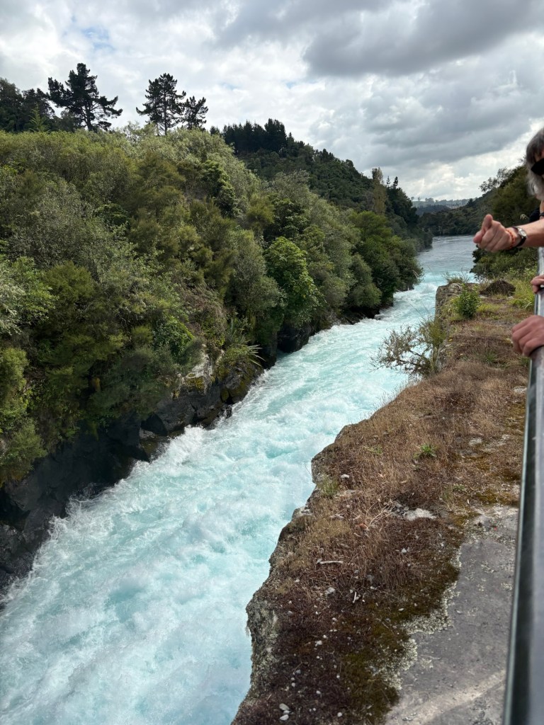 Nach dem Einkauf ging es weiter zu den Huka Falls. Ich bin zwar in einer Gegend, in der die Sehenswürdigkeiten „abgegrast“ sind, d.h. Ich war da schon. Aber gut, sind immer noch eindrucksvoll.