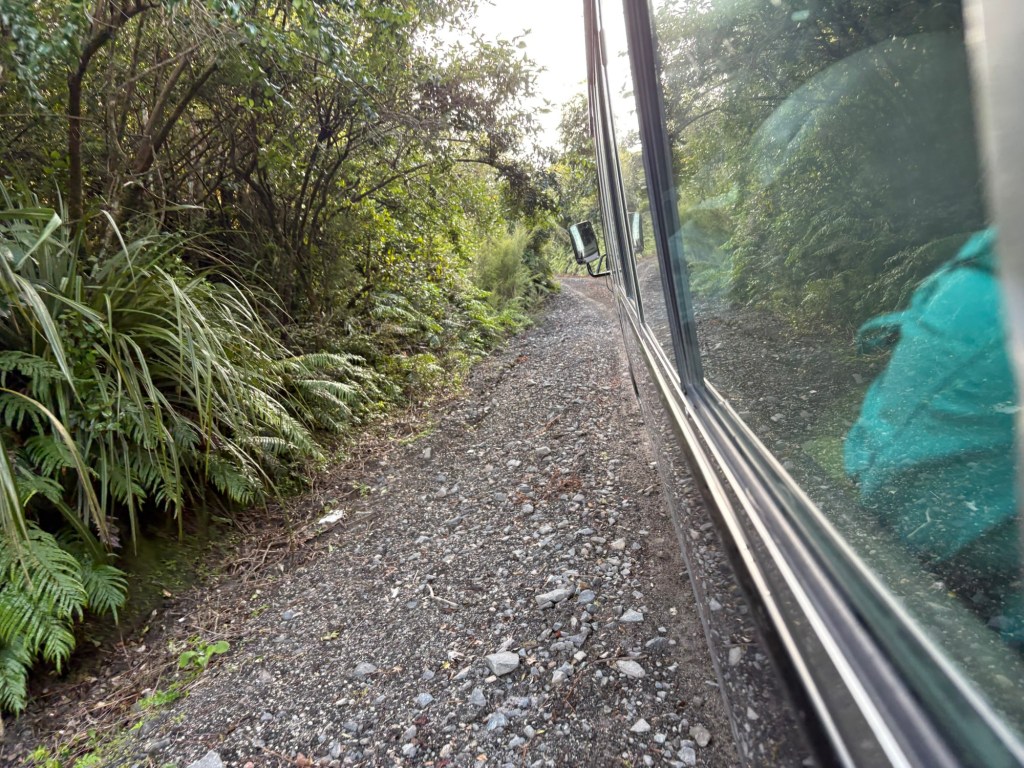 Mit etwas Verspätung ging es dann los. Zuerst eine halbe Stunde auf der Straße. Und dann kam das, warum ich den Mount Tararwera nicht alleine besteigen kann/darf. Der Berg gehört einem Maoristamm, auf einer Spitze ist ein Friedhof. Deswegen ist der Zugang eingeschränkt und man darf nur mit einer Tour hoch.