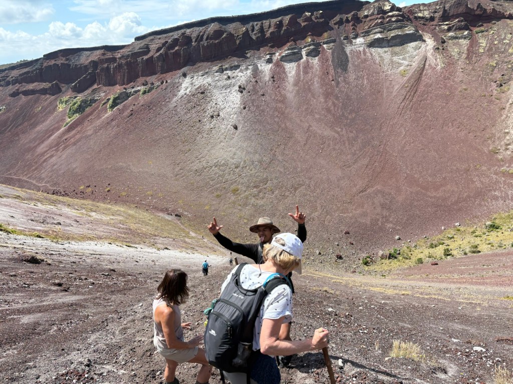 Da waren wir oben auf dem Berg. Und wurde noch ein Kraterspaziergang versprochen. Also muss man runter.