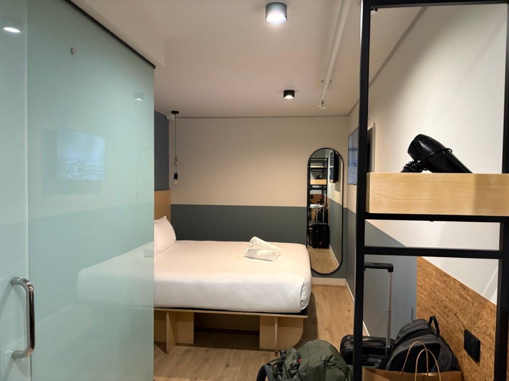 Nachdem ich jetzt gefüttert im Hotel bin, kommt heute wahrscheinlich nicht mehr viel. Die Uhr sagt, heute war Wandertag. Und ich vernichte noch letzte Getränke. Muss alles weg. Nur ein Fenster hat dieses Zimmer leider nicht. Sonst ist es ganz OK.